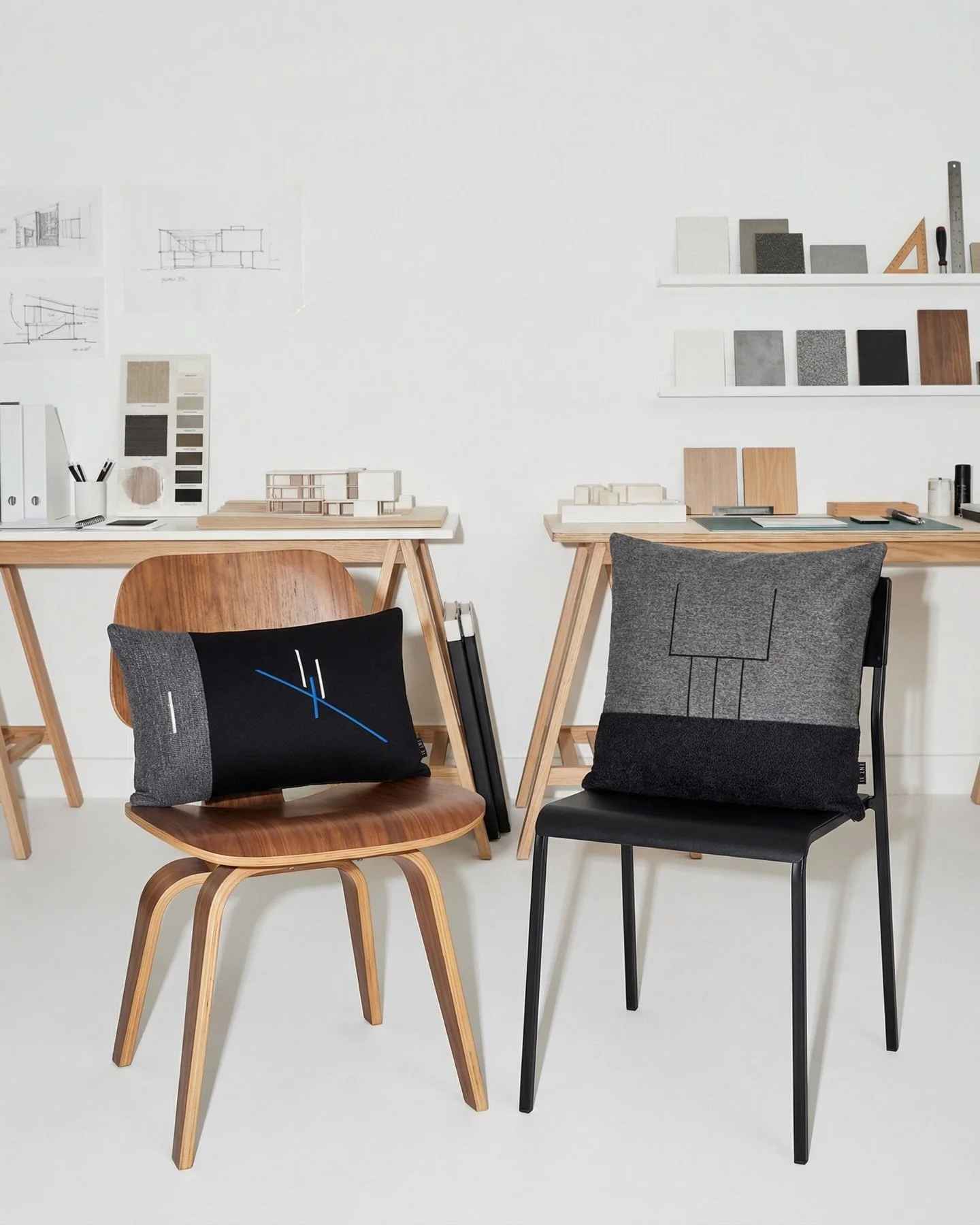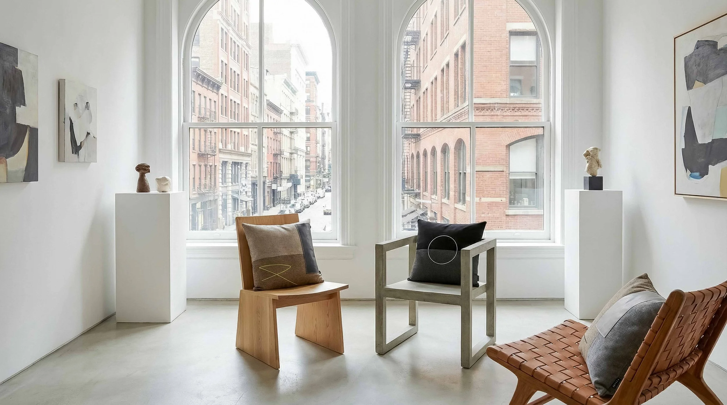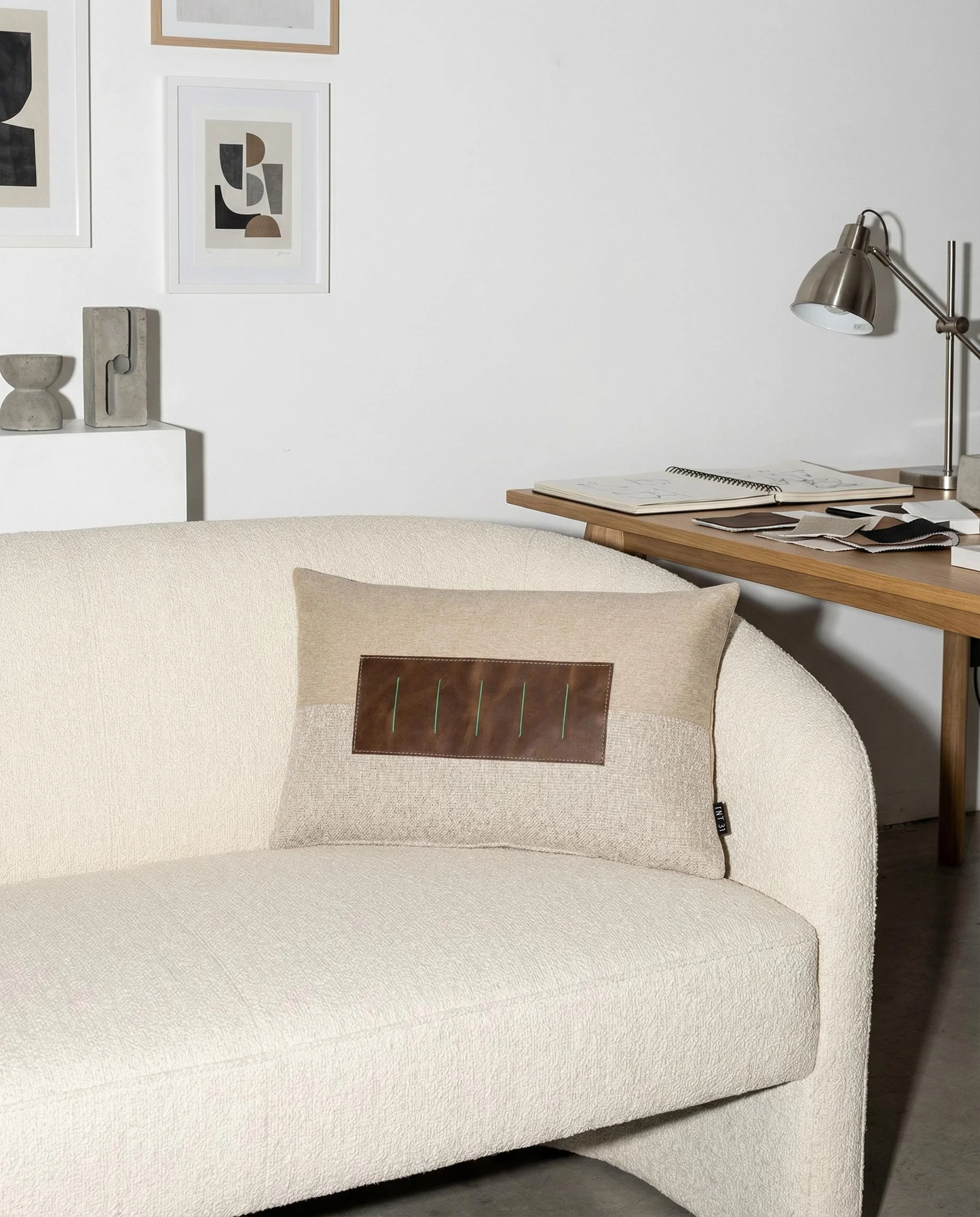 Each design is shaped through a balance of material, colour, and form—combining woven textiles, leather, and hand-finished details to create quiet sculptural objects for contemporary interiors.