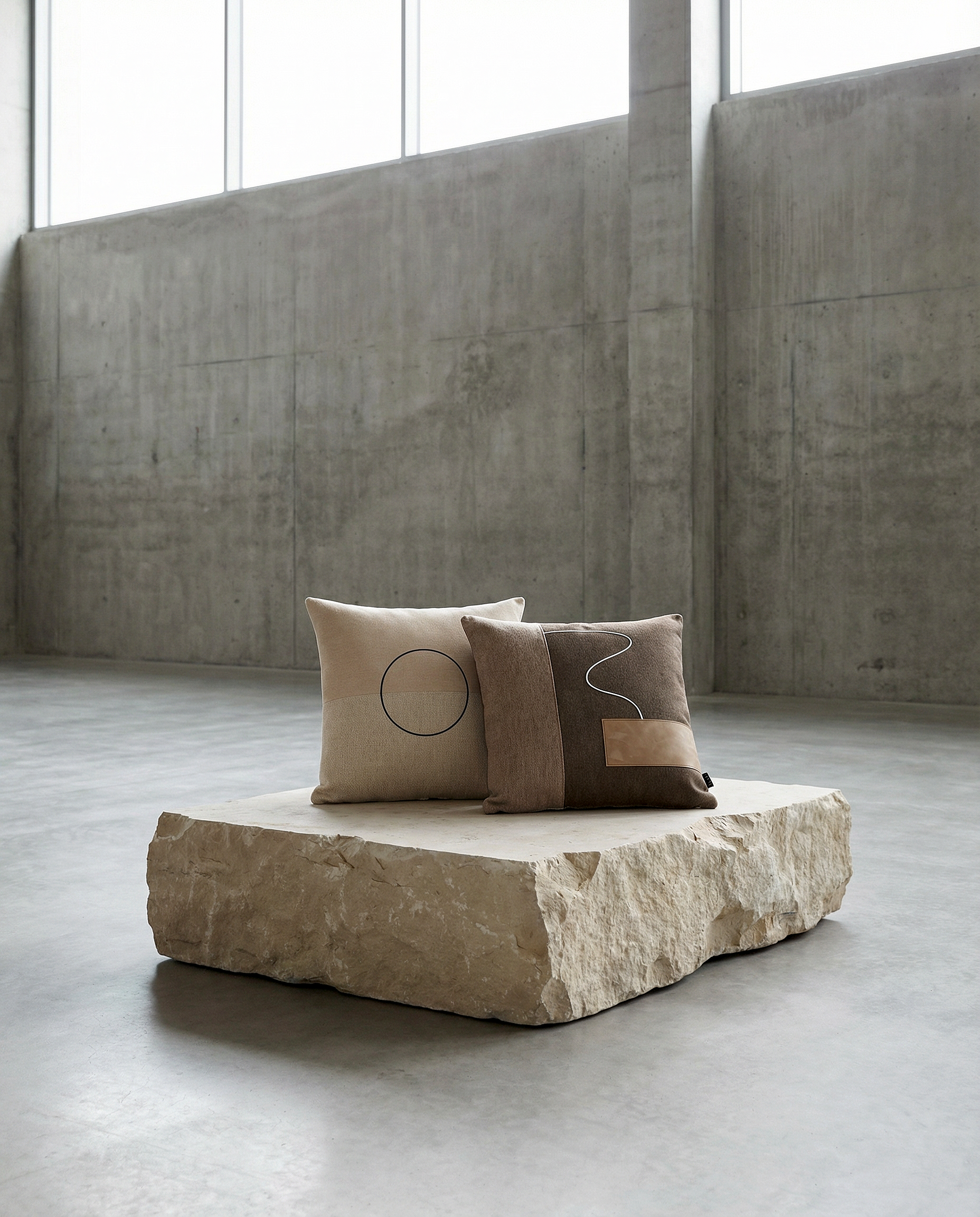 Our sculptural cushions are designed as tactile forms—bringing texture, presence, and quiet visual tension into interior spaces.